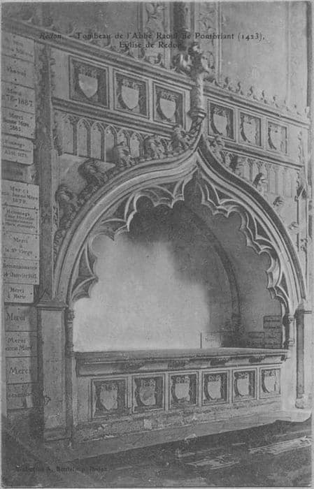 Tombeau se composant d'une niche voûtée renfermant le sarcophage décoré de six panneaux sculptés avec des écussons dont les armes sont mutilées. La dalle supérieure, moulurée, recevait autrefois l'effigie de l'abée Raoul de Pontbriant qui a disparue. Entourant la niche, une arcade en accolade avec trilobes et crochets. Au-dessus, une frise, des écussons dans les panneaux sculptés.