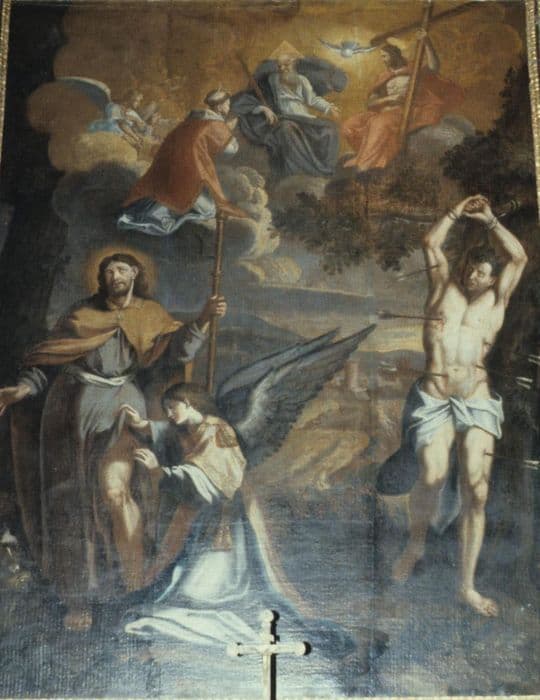 autel, retable : Trinité, saint Roch et saint Sébastien (la)