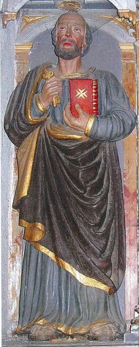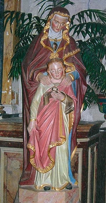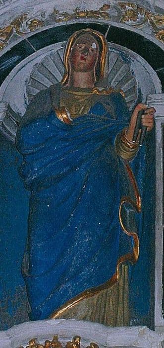 Au centre du retable, un tableau moderne encadré de deux colonnes corinthiennes de marbre gris doublées de pilastres en pierre peinte qui imite le marbre jaune jaspé de noir. Deux pilastres noirs accostent une niche supérieure.