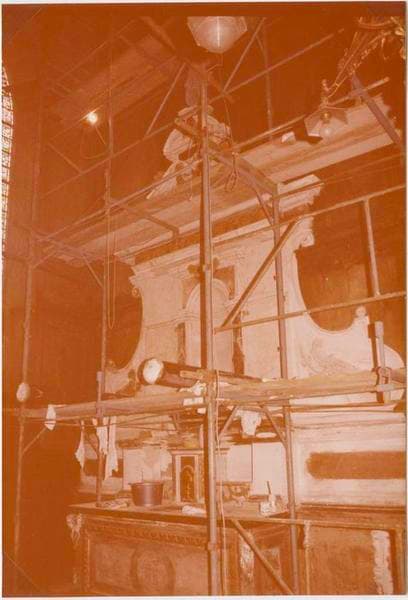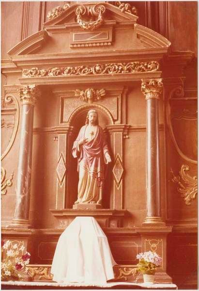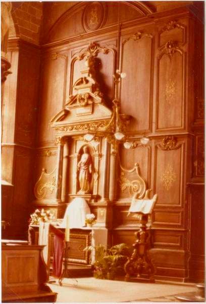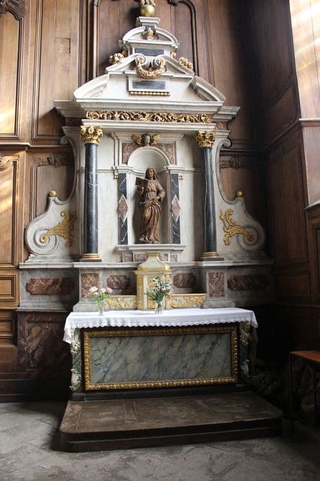 Au transept nord, est un autel dont la table moulurée est surmontée d'un cadre sculpté accompagné latéralement de niches avec pinacles. Au centre, deux moulurations verticales formant niche coupent les cadres. L'ensemble est surmonté d'une riche corniche que domine un pignon sculpté.
