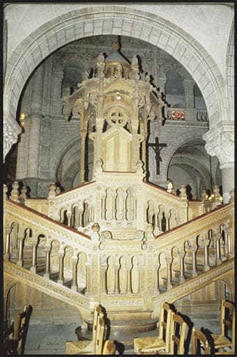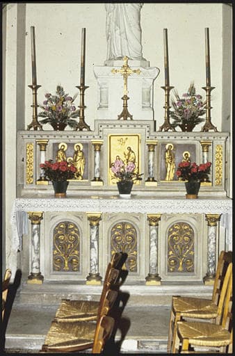 POP | Plateforme ouverte du patrimoinemaître-autel et autels secondaires, clôture liturgique (table de communion), chaire à prêcher, confessionnaux, 16 lustres, pavement du choeur (œuvre volée)