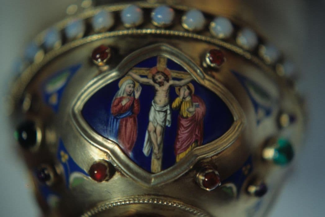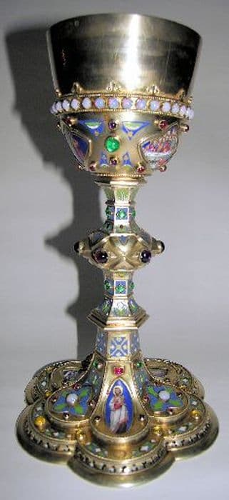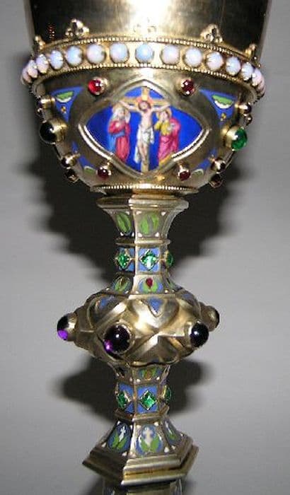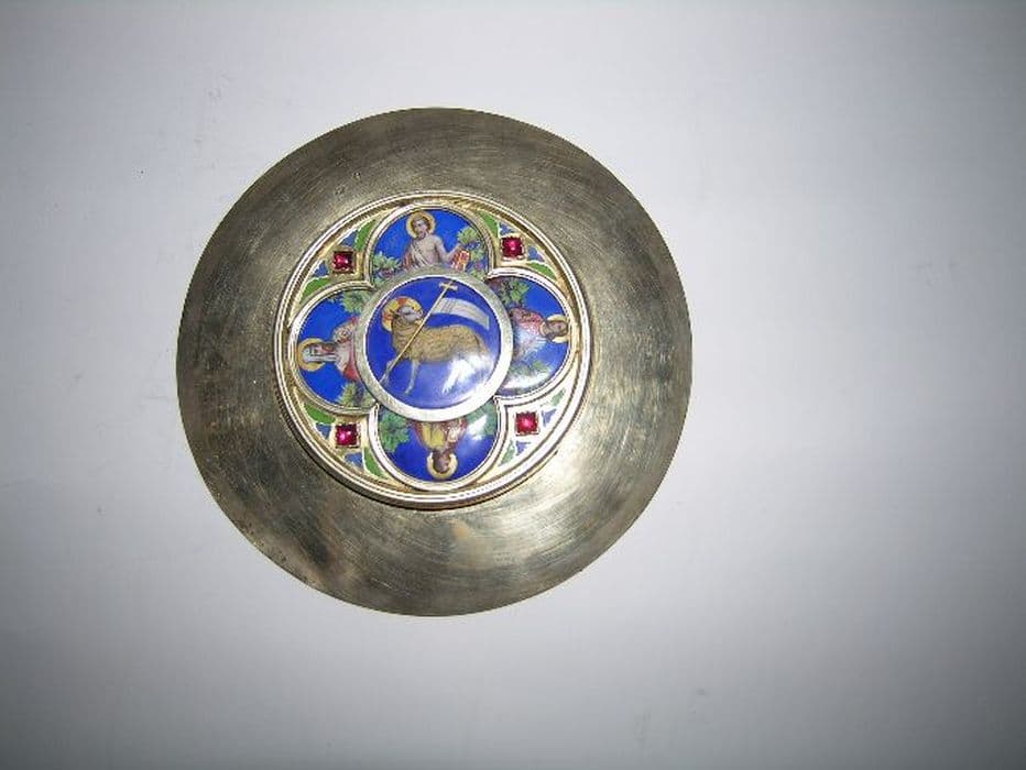 argent : doré, repoussé, ciselé, émail champlevé, peinture à l'émail ; pierre