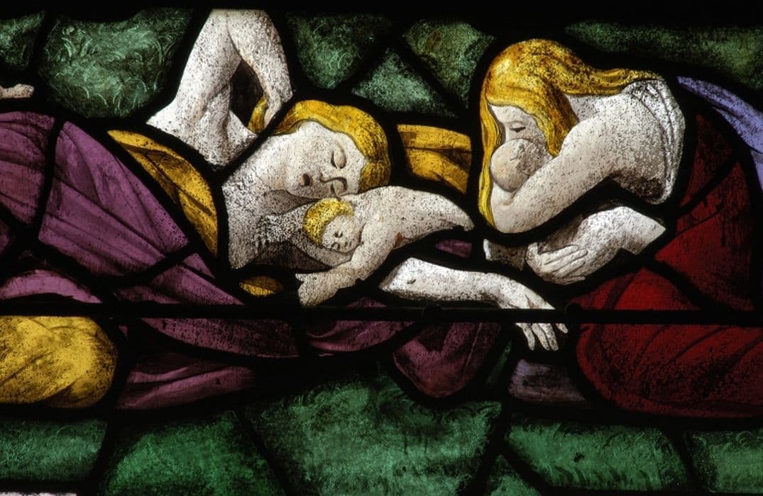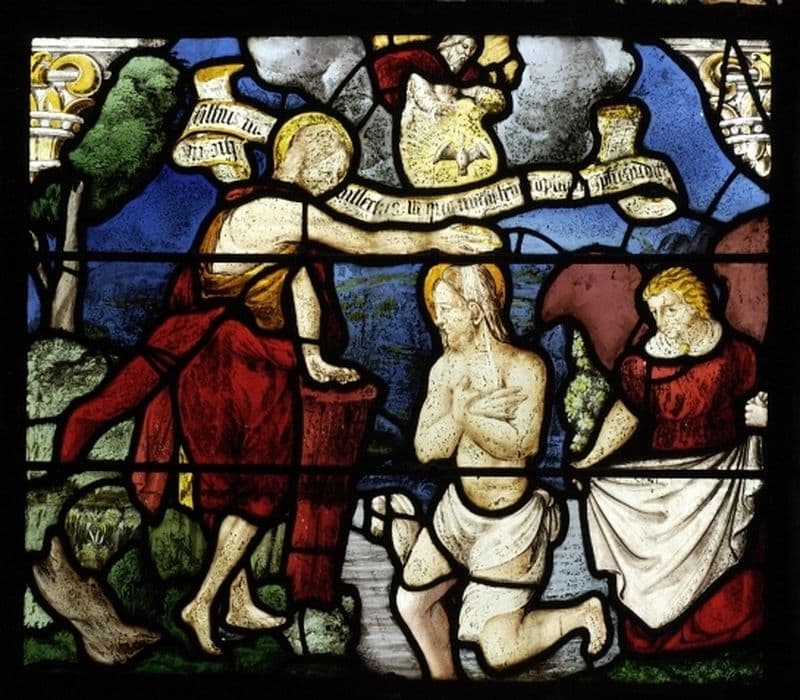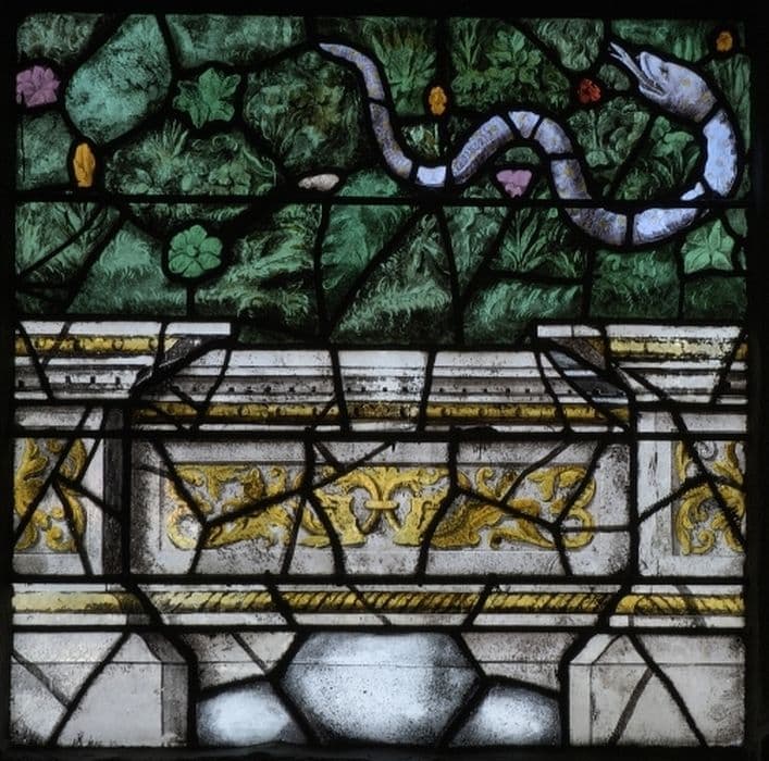 POP | Plateforme ouverte du patrimoine4 verrières : Paradis terrestre : la Faute et le châtiment, le Massacre des Innocents, le Baptême du Chris, Jésus à Bethléem