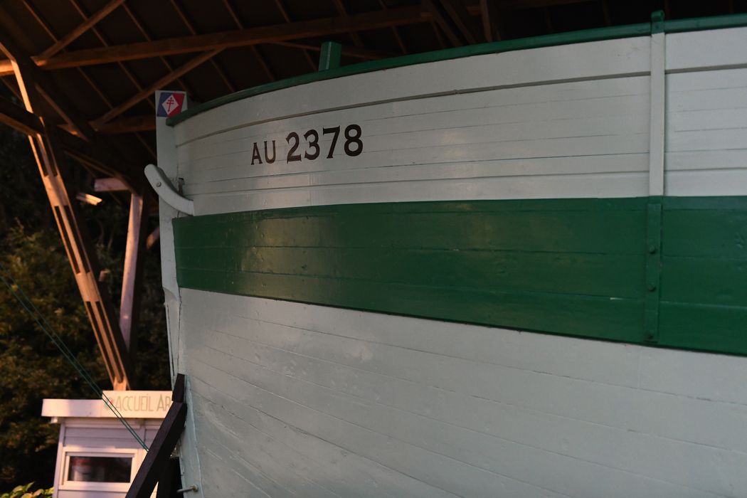 Coque en bois. Bateau de charge dundée. Malgré son état déplorable, le bateau reste indéniablement très beau grâce à ses formes d'une grande finesse et à son arrière camaretois d'une élégance oubliée.
