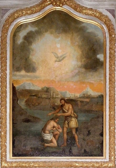 POP | Plateforme ouverte du patrimoineretable du collatéral sud, son tableau : Baptême du Christ et ses deux statues : Saint Jean-Baptiste et Saint Michel
