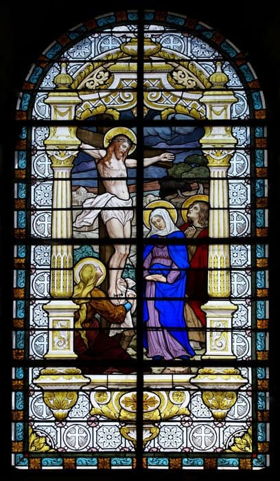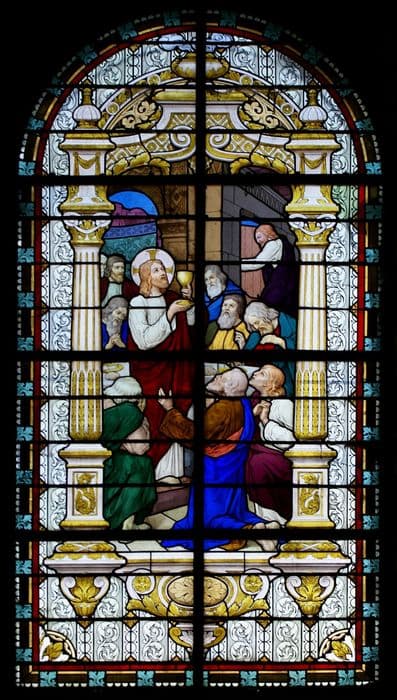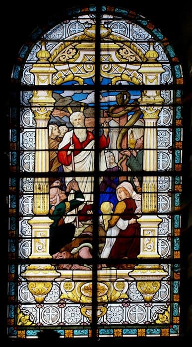 POP | Plateforme ouverte du patrimoinesix verrières : Saint Joseph, Pâque, Moïse et le serpent d'airain, Christ au Calvaire, Cène, Immaculée Conception