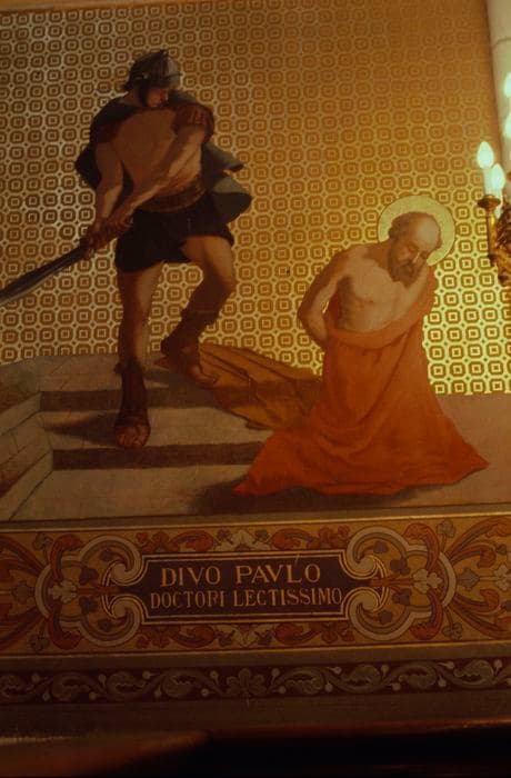 deux peintures monumentales (fresques) : Remise des clés à saint Pierre et Décollation de saint Paul