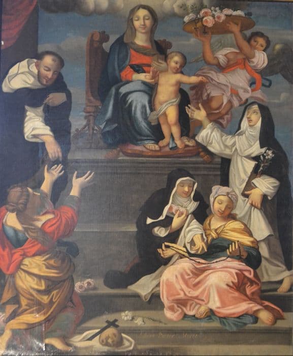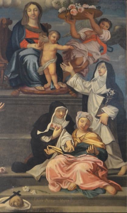 Apparition de la Vierge à saint Dominique ; sainte Catherine de Sienne ; remise : rosaire