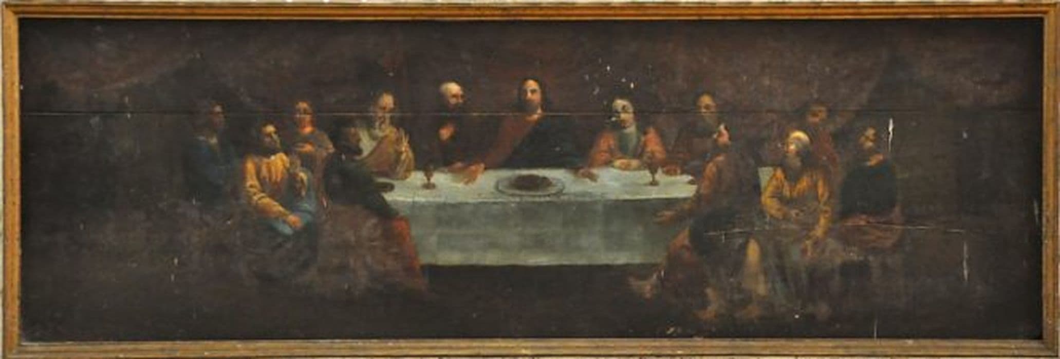 bois sculpté, peint, doré ; toile (support) : peinture à l'huile