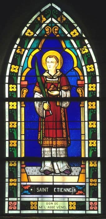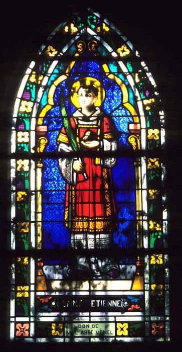 verrière (fenêtre) du bas-côté sud : Saint Etienne tenant la palme des martyrs