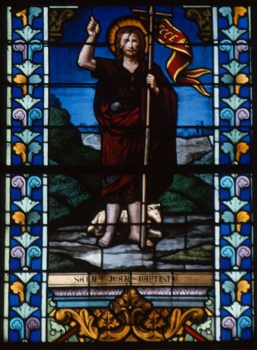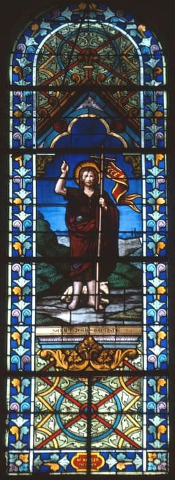 POP | Plateforme ouverte du patrimoineensemble de neuf verrières (grisailles) et cinq verrières : Saint François d'Assise recevant le corps du Christ (baie 0), Apparition de la Vierge de Lourdes (baie 1), Saint Jean Baptiste (baie 2), Sacré-Coeur de la Vierge (baie 3), Sacré-Coeur de Jésus (baie 4)