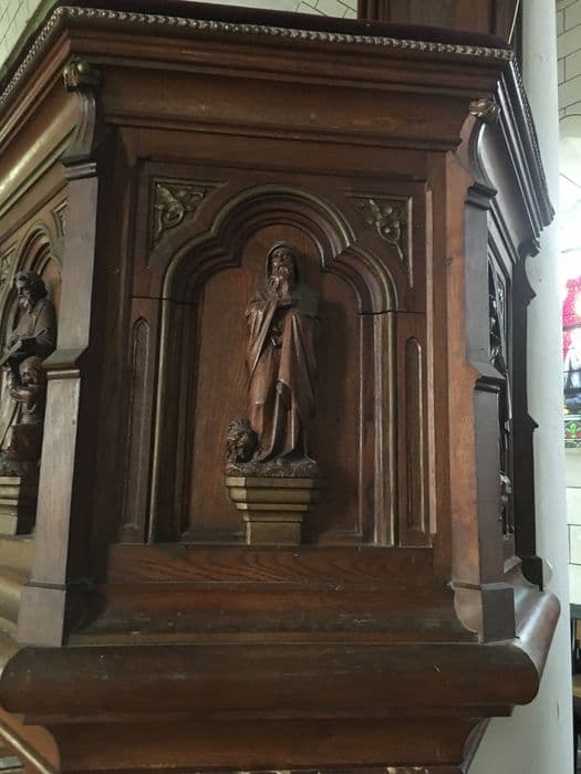 autel ; stalle ; retable (2) ; statue ; chaire à prêcher