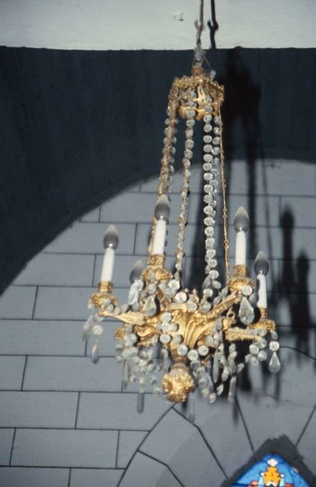 lustre en bronze : h = 100 ; lustres en verrerie : h = 90 ; lustres néo-roman : h = 110
