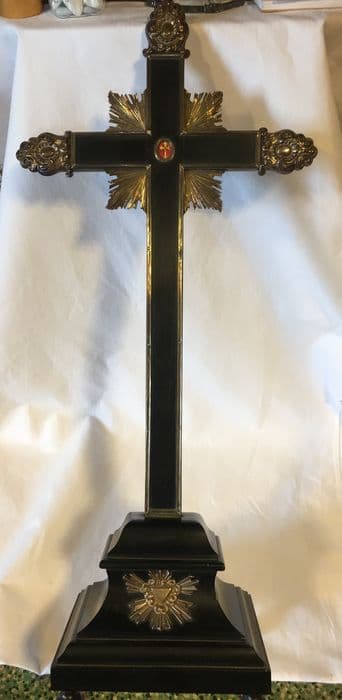 Croix-reliquaire en argent et coffret en bois noirci.