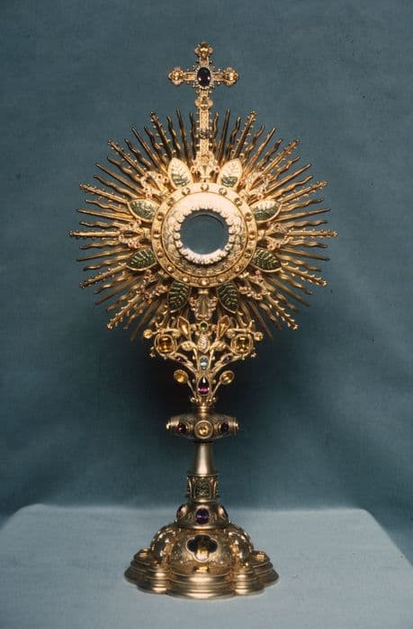 Ostensoir en argent doré, émaux, pierres et perles.