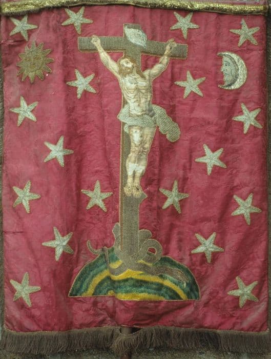 POP | Plateforme ouverte du patrimoinebannière de procession : Christ en croix et Immaculée Conception