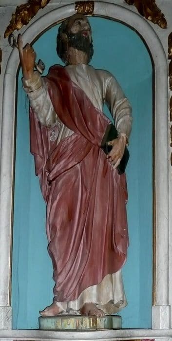 POP | Plateforme ouverte du patrimoineretable du maître-autel avec son tableau : Ascension du Christ et ses deux statues : Saint Jean-Baptiste et Saint Pierre