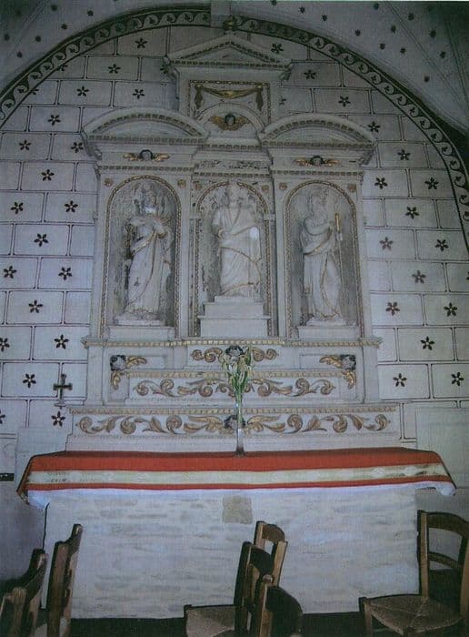 retable du transept nord et trois statues : Vierge à l'Enfant, Saint Pierre et Saint Paul