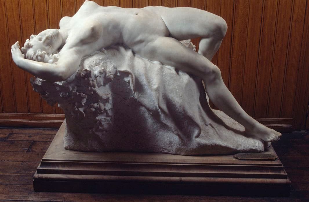 La Bacchante est représentée couchée sur une pierre dans une pose très lascive.