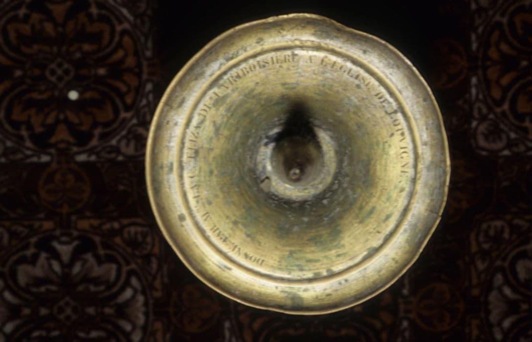 Inscription (sur cinq des six chandeliers) : donné à l'église de Louvigné par Madame la Comtesse de La Riboisière, 1831.