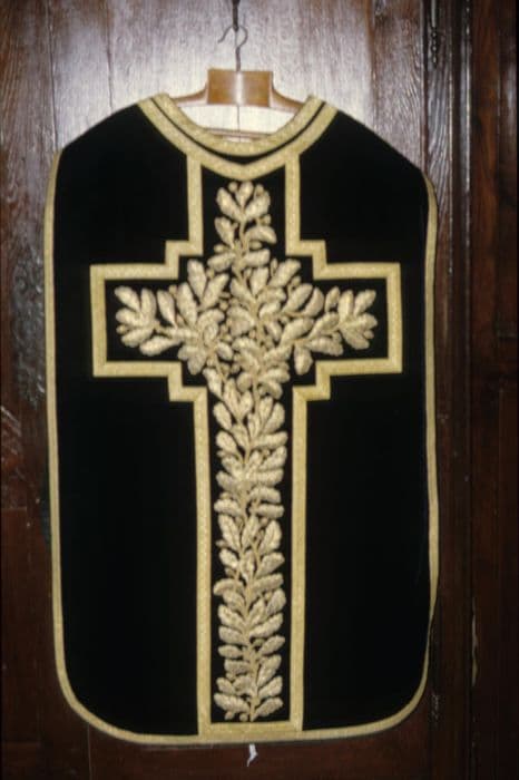 ornement noir : chasuble, étole de clerc, voile de calice, manipule et bourse de corporal