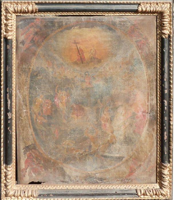 toile (support) : peinture à l'huile, vernis ; bois : peint, doré