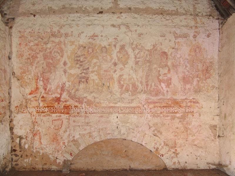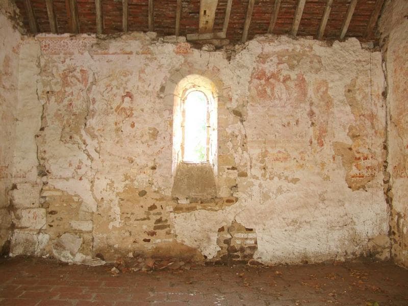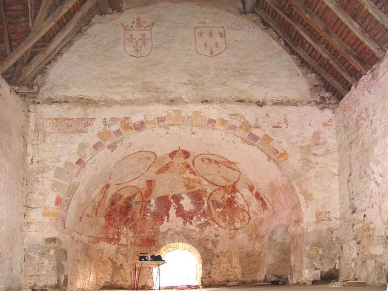 Décor peint sur les murs du chur : le cycle de la Passion (14e siècle), décor de faux claveaux colorés, figure du Christ en Majesté sur l'abside (15e siècle), décor funéraire dans la chapelle seigneuriale accolée au mur nor du chur (17e siècle).