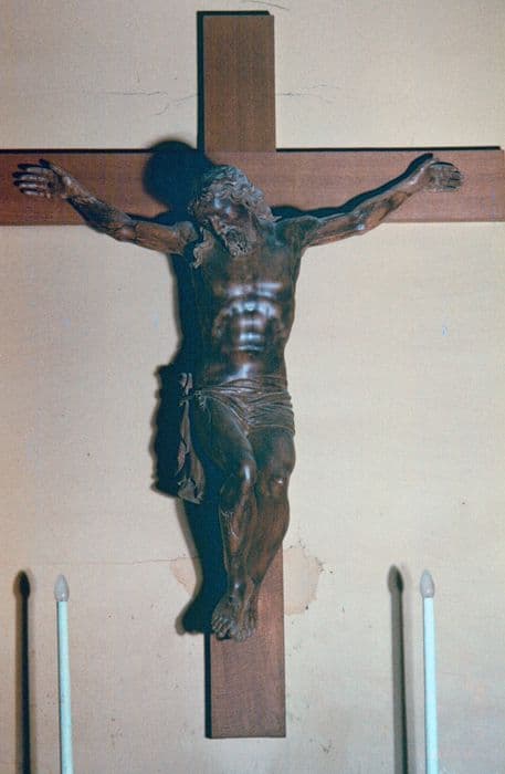 POP | Plateforme ouverte du patrimoineensemble de mobilier : autel (maître-autel) et retable, statue : Christ en croix, deux autels secondaires, fauteuil de célébrant, deux lustres, vingt-trois bancs