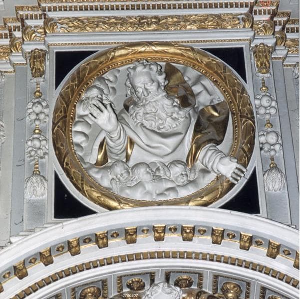 POP | Plateforme ouverte du patrimoineretable, tableau, groupe sculpté : La Sainte Famille, Le Père éternel adoré par des anges