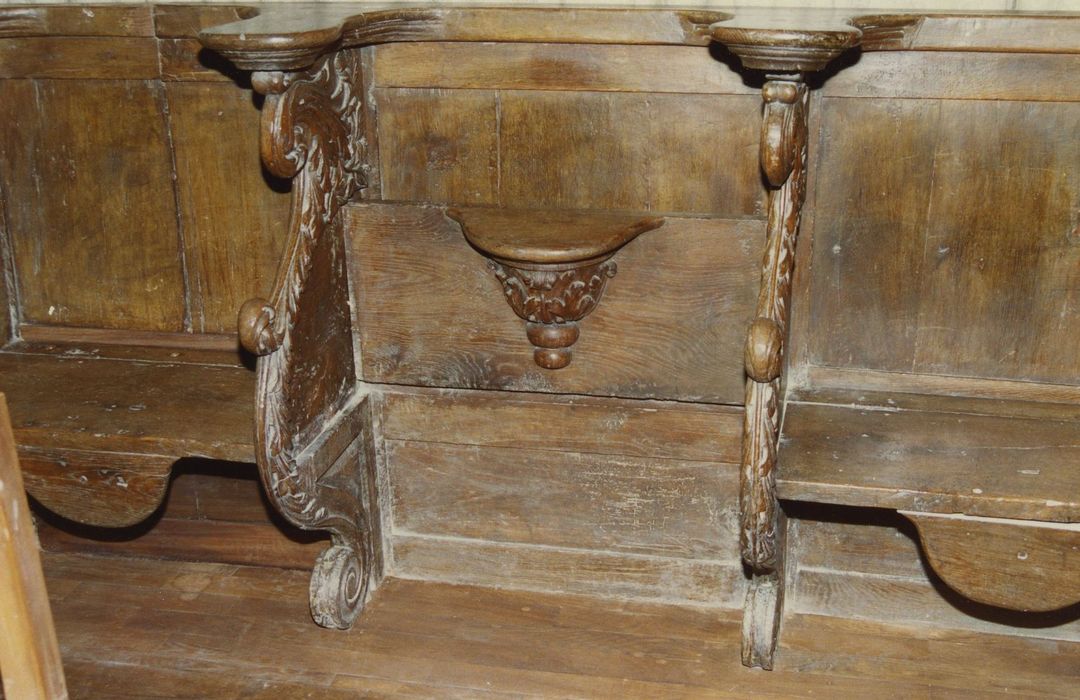 Divisées en trois groupes, huit du côté de l'évangile, deux et cinq du côté de l'épître, ces stalles ont leurs accoudoirs et leurs miséricordes sculptés.