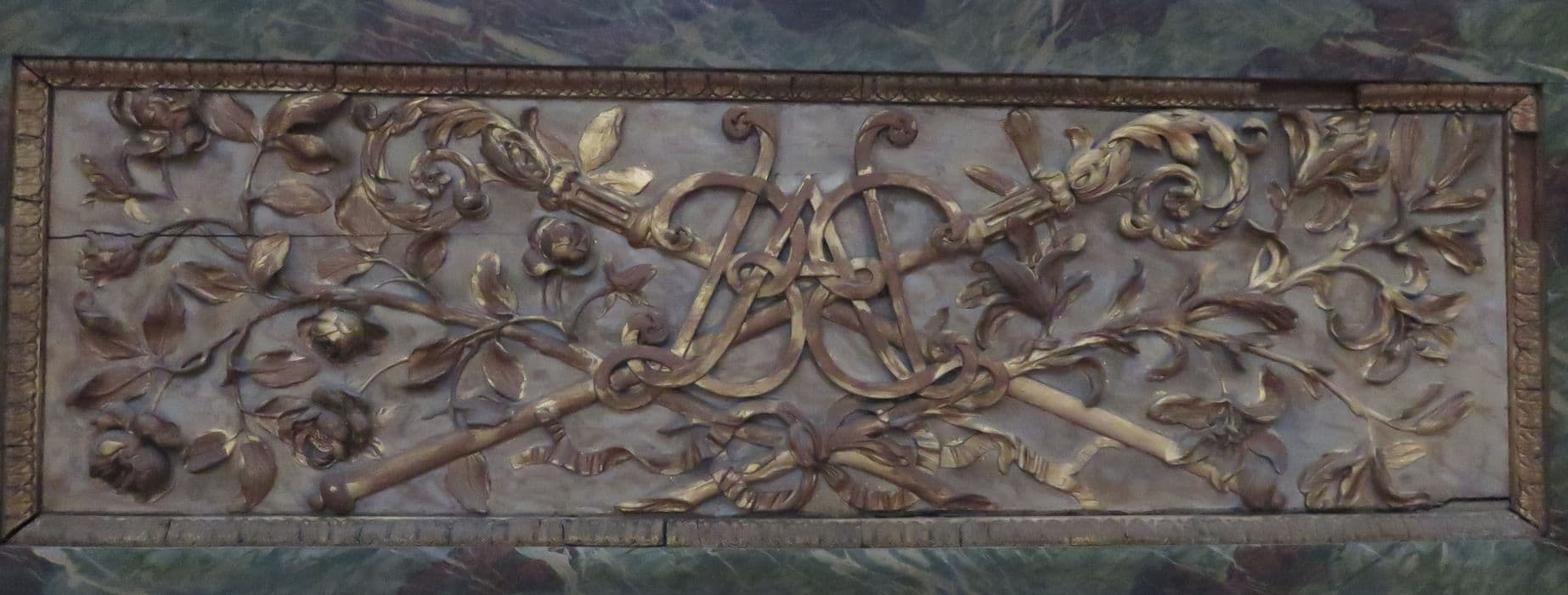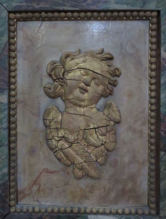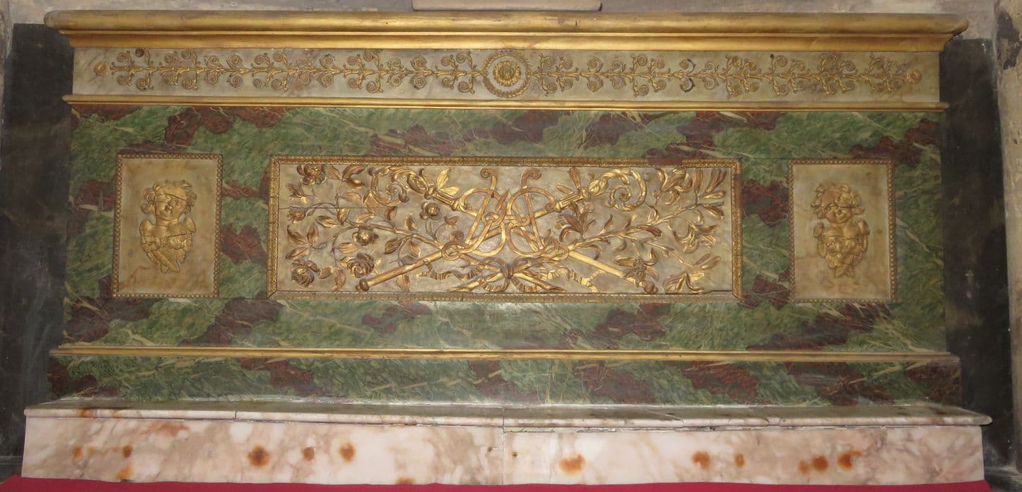 déambulatoire, coté nord, cinquième chapelle, encastré dans la décoration de l'autel