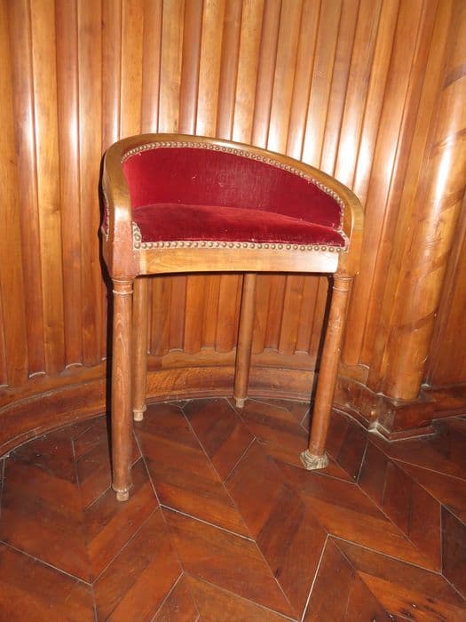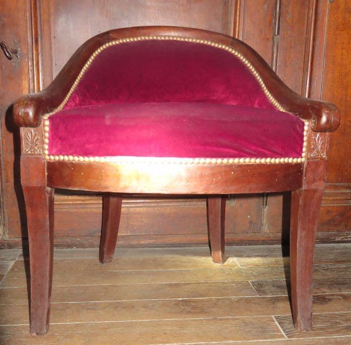 noyer ; acajou ; velours (rouge) ; laine (garniture)