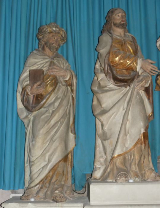 Récolement du 04/04/2024 : bon état général. Surpeint au 19e siècle. Mains du grand prêtre, mains droites de la Vierge et de saint Joseph cassées et remplacées au 19e siècle. Oeuvre restaurée (polychromie) en 1986.