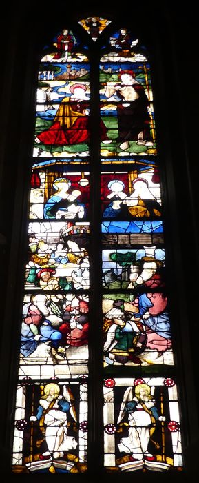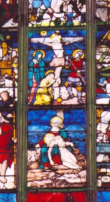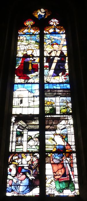 POP | Plateforme ouverte du patrimoineverrières : la Lapidation de saint Pierre, Scènes de la Passion, Parenté de la Vierge, Apparition du Christ à la Madeleine, Sainte Catherine, l'Apparition du Christ à saint Pierre (baies n°1, n°2 et n°4)
