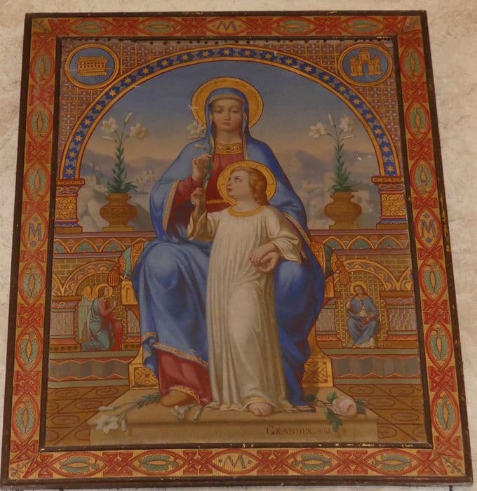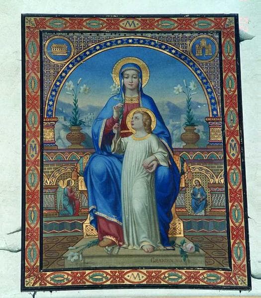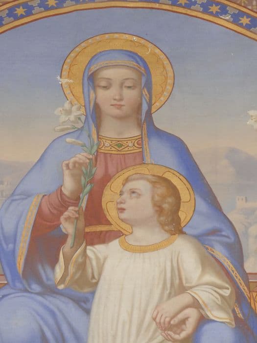 tableau : La Vierge en Majesté présentant à l'Enfant Jésus le lys de l'Annonciation