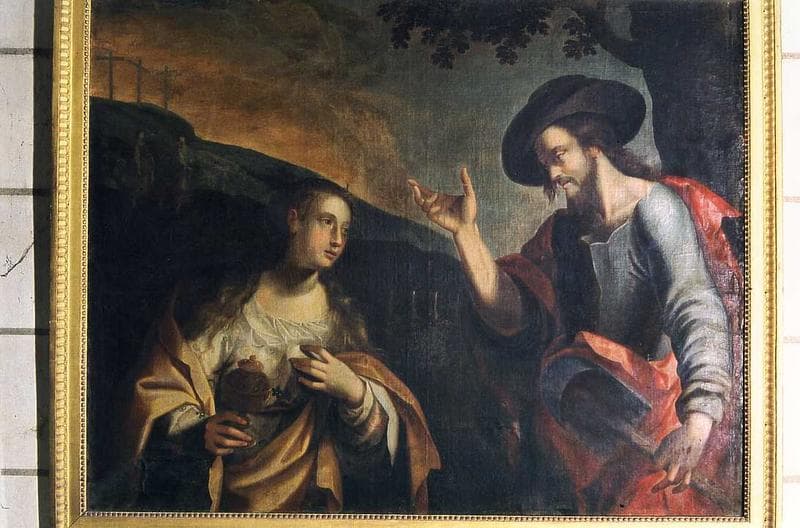 Cette oeuvre à la composition appliquée et un peu conventionnelle met en scène le chapitre 20, versets 1 à 18 de l'Evangile de saint Jean : alors que Marie-Madeleine de dirige le tombeau du Christ pour apporter de quoi l'embaumer, Jésus lui réserve sa première apparition de ressuscité en lui montrant les plaies visibles dans ses mains.