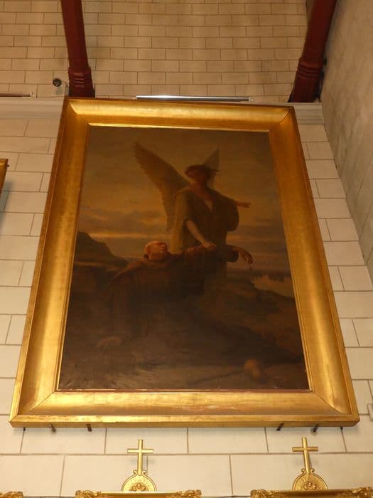 tableau : Un Pèlerin tombant en faiblesse réconforté par un ange, cadre