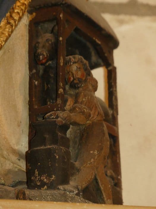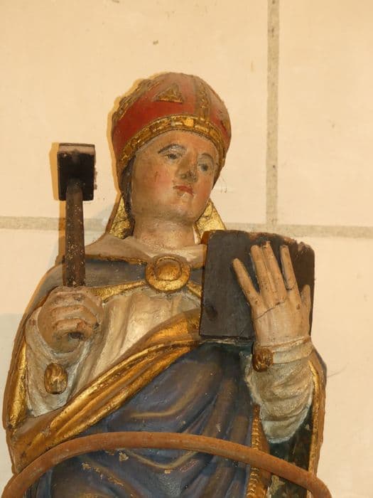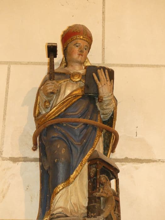 L'évêque saint Eloi est représenté mitré et tenant un marteau.
