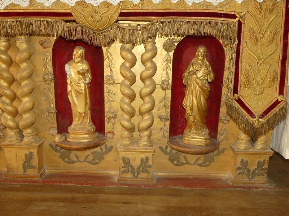 Un gradin à deux étages surmonte l'autel et supporte le tabernacle.