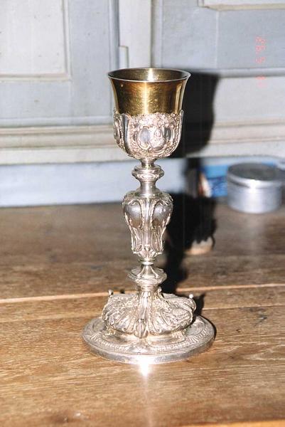 Le calice est formé d'une coupe, une fausse-coupe, une tige et un pied. La coupe est dorée à l'intérieur. La tige est ornée d'un noeud balustre qu'encadrent deux bagues.