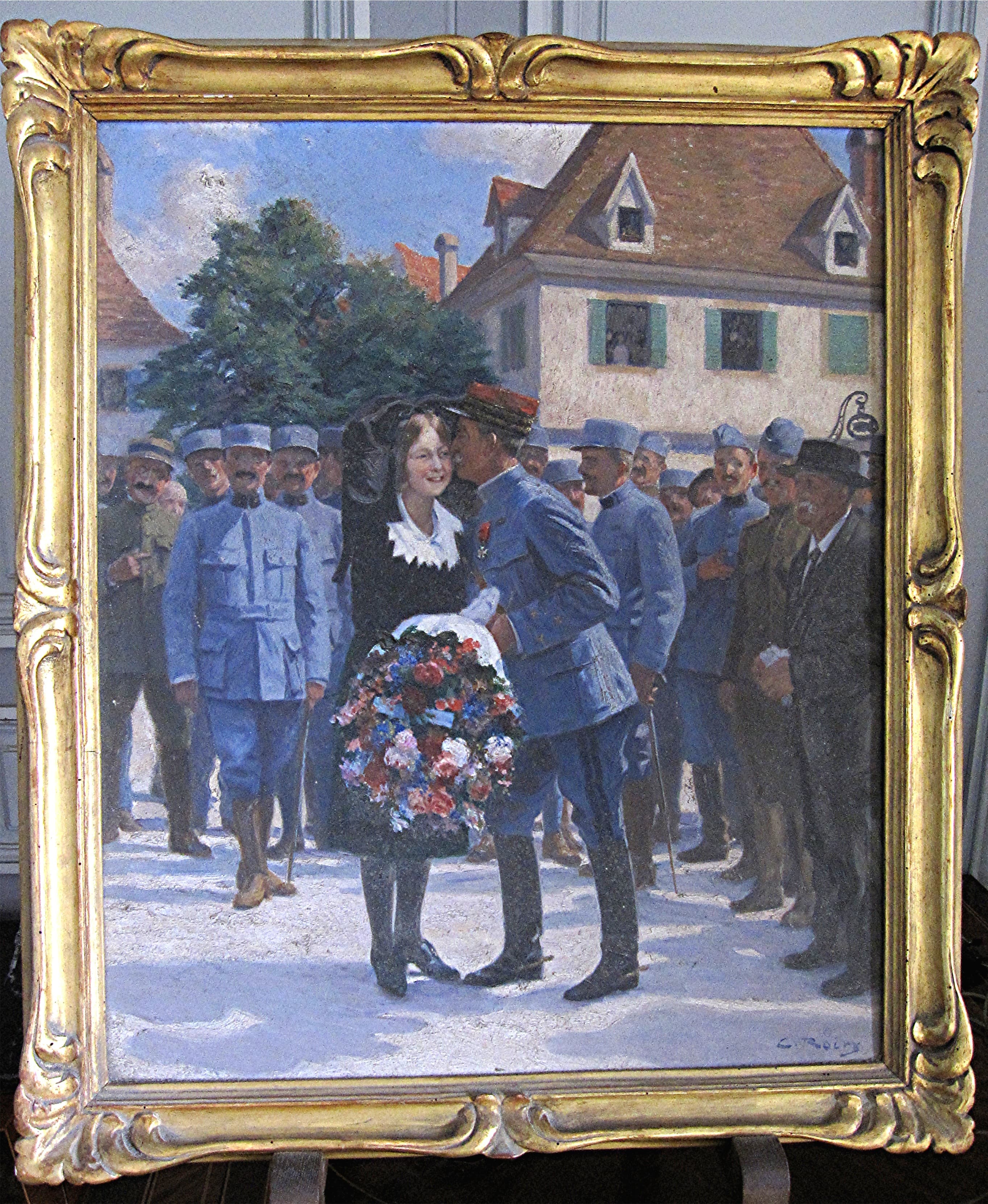 tableau et son cadre : Le général et marquis de Contades-Gizeux au moment de la libération de l'Alsace