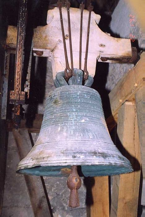 La robe de la cloche porte une inscription de sept lignes et un décor de filets dans la partie inférieure.
