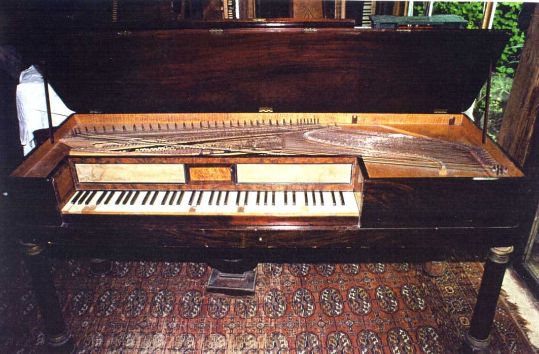 Piano à queue grand patron, sans doute d'un des tous premiers pianos à 7 octaves très répandu après 1860. Son meuble est en vernis noir.