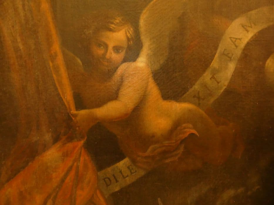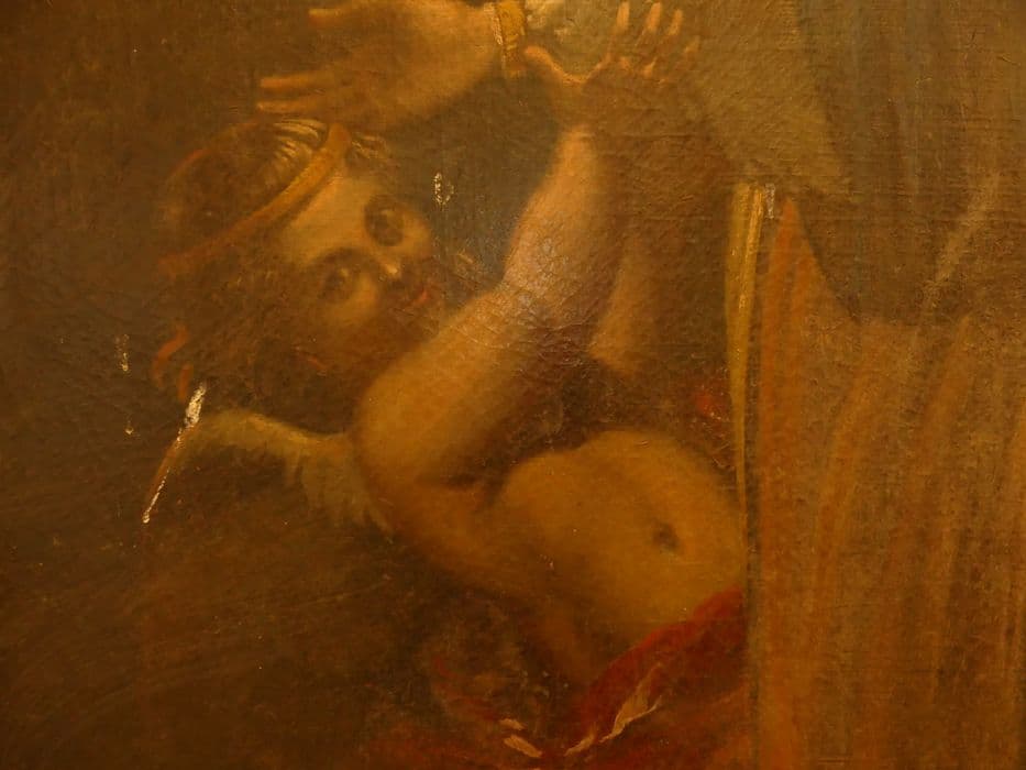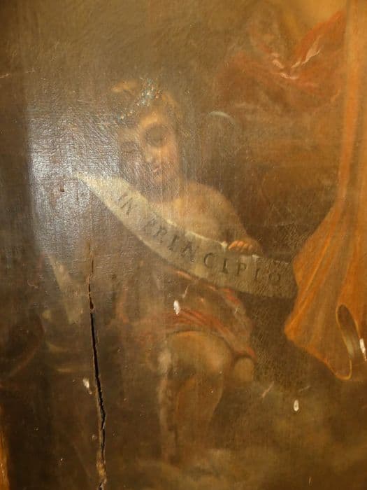 toile (support) : peinture à l’huile ; bois : taillé, doré ; plâtre : moulé, doré