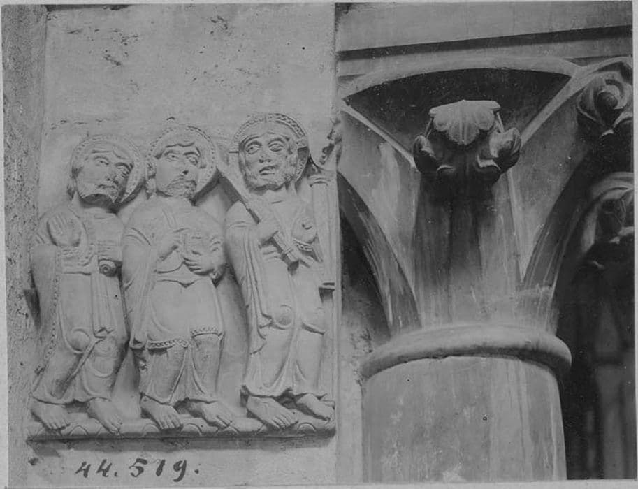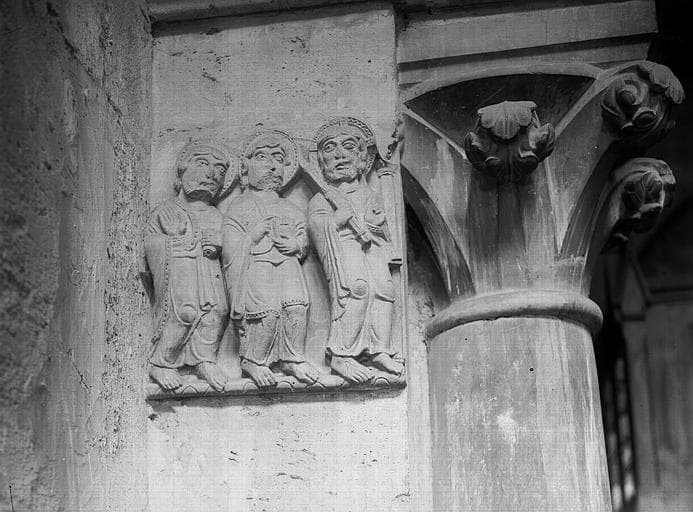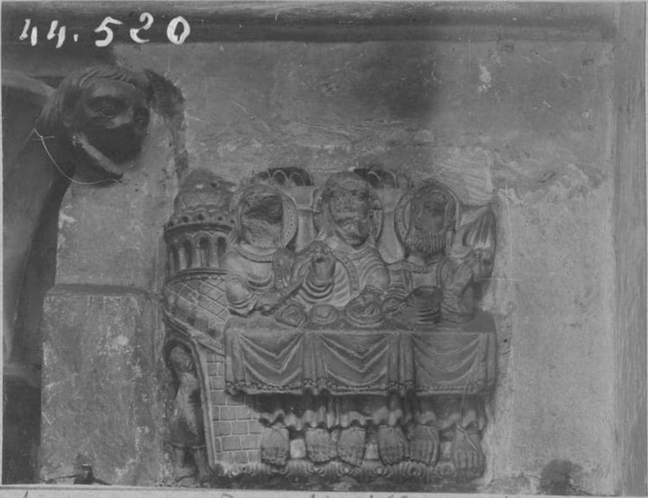 POP | Plateforme ouverte du patrimoine2 bas-reliefs : le Repas des disciples d'Emmaüs, le Christ et deux apôtres