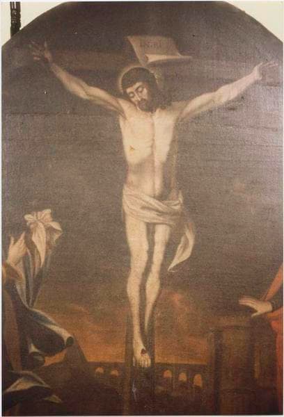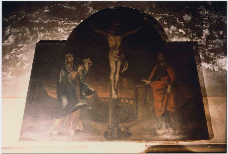 tableau : Christ en croix avec Marie et saint Jean l'Evangéliste