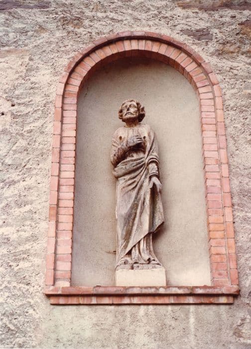 Statues des niches de la façade de l'église. Elles présentent des traces de polychromie.
