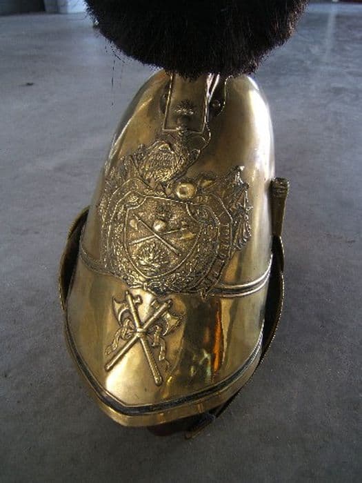 Casque d'apparat de sapeur pompier en laiton poli et crin de cheval.
