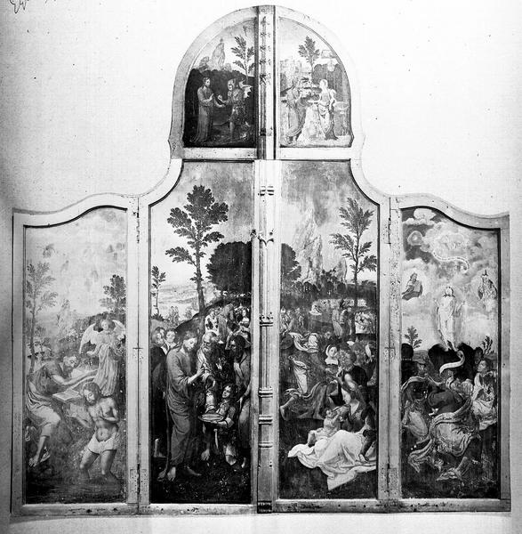 Ce retable, flamand, a été donné par la commune de Gand à Guillaume Poupet, abbé de Baume (1524-1583).