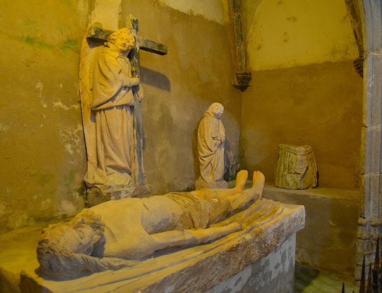 Antoine Le Gagnaire (?), ou son frère Catherin, l'un grand chambrier et l'autre doyen de l'abbaye, fit édifier, vers la fin du 15e siècle, dans la muraille, un sépulcre représentant le Christ étendu sur un suaire ; autour du tombeau se trouvent des statues, parmi lesquelles la statue de l'ange.